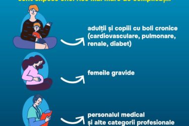 Oricine se poate îmbolnăvi de gripă, însă anumite persoane sunt mai vulnerabile și au nevoie de atenție specială. Copiii mici (de la 6 luni în sus), vârstnicii, femeile însărcinate și persoanele cu boli cronice (cardiovasculare, pulmonare, renale, hepatice, sangvine sau diabet) sunt mai expuși riscului […]
